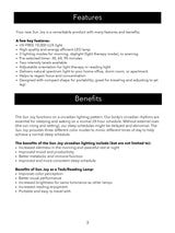The Sun Joy brings the light of a springtime morning into your home or office. Using your light therapy lamp on a regular basis during the fall, winter, and spring months will not only keep your moods and energy levels up, but it will also pleasantly improves your focus!